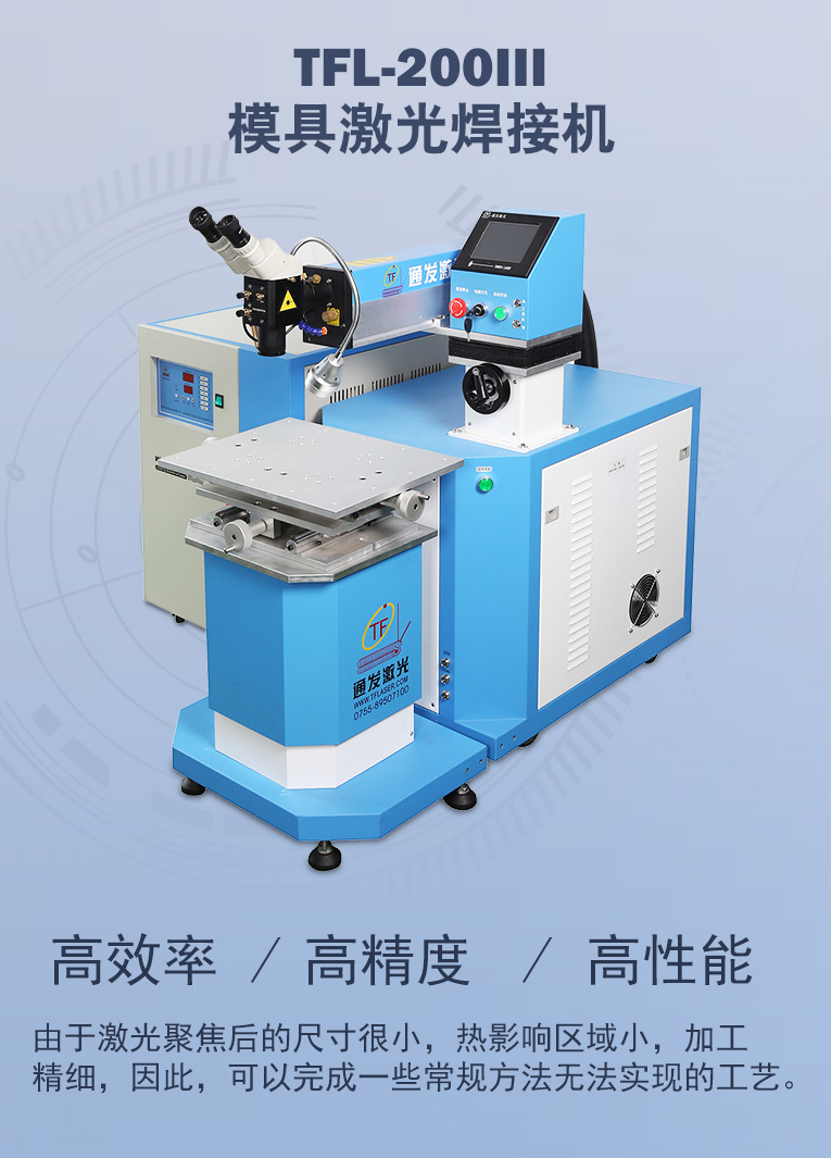 • 通發(fā)激光國內(nèi)率先推廣國產(chǎn)模具激光焊機,TFL-200Ⅲ升級型世界500強選用針對精密塑膠模具激光焊、鏡面塑膠模具激光燒焊、精密壓鑄模具激光焊補.為國內(nèi)模具修復行業(yè)做出巨大貢獻。