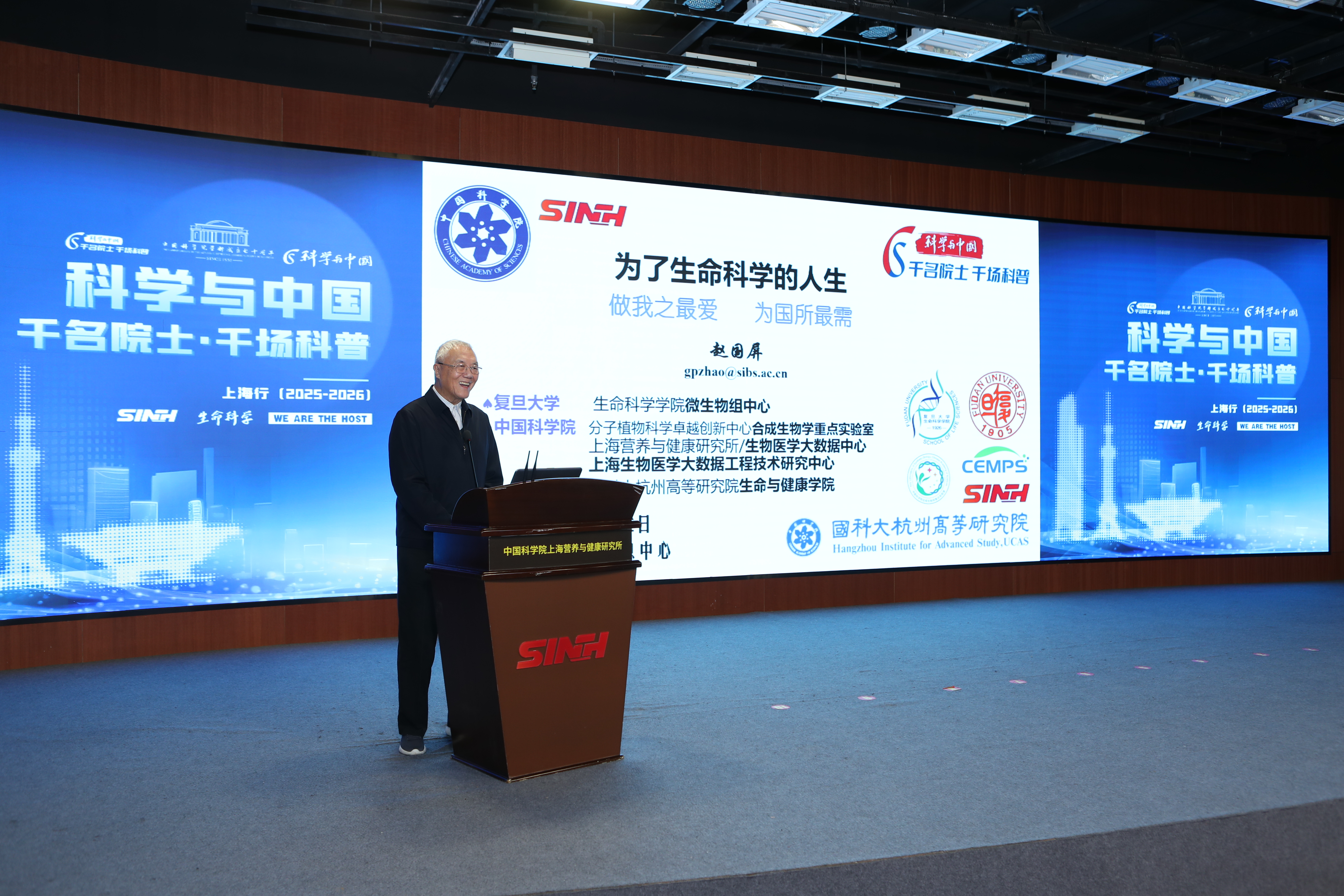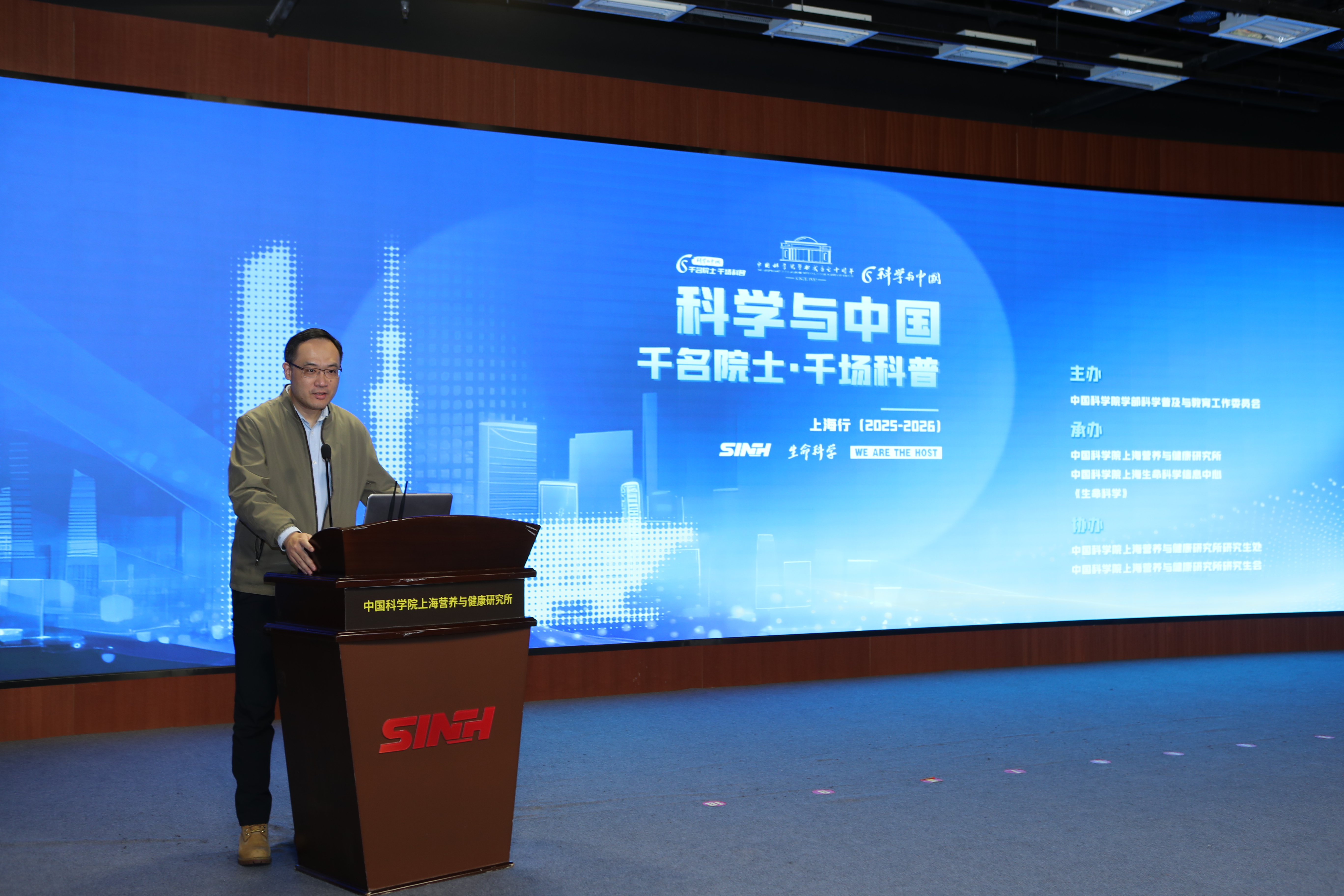 12月2日,“科學與中國——千名院士·千場科普”上海行活動(2025-2026)啟動。首場科普活動在中國科學院上海營養與健康研究所以線上線下相結合的方式舉行。位于岳陽路的科學大院學術氛圍濃厚,來自營養與健康所、上海市研發公共服務平臺管理中心、上??茖W學研究所、《生命科學》編委會等科研單位及組織的科技工作者、研究生們與線上3700余名公眾共同聆聽了趙國屏院士和吳家睿研究員的精彩報告。